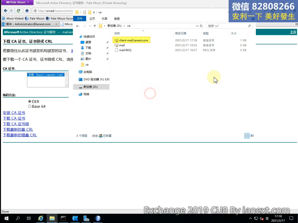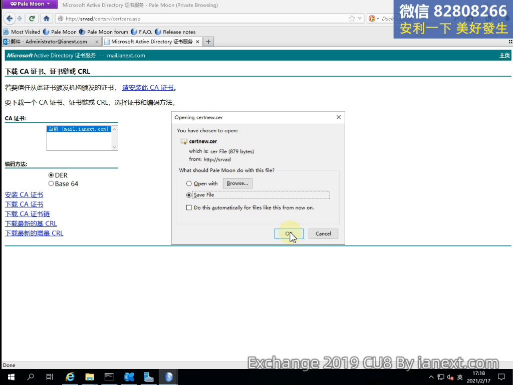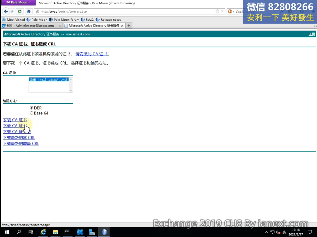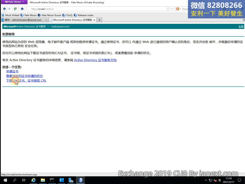 1、http://SRVAD.ianext.com/certsrv(登錄 AD 服務器上的 ADCS 證書頒發機構)