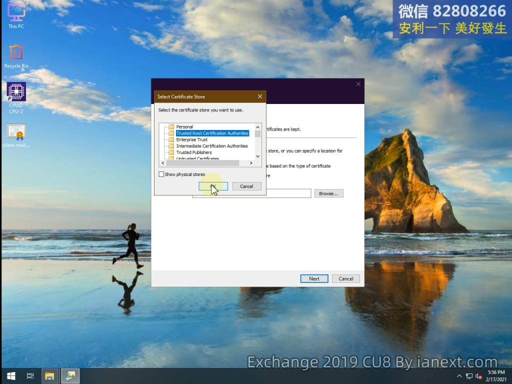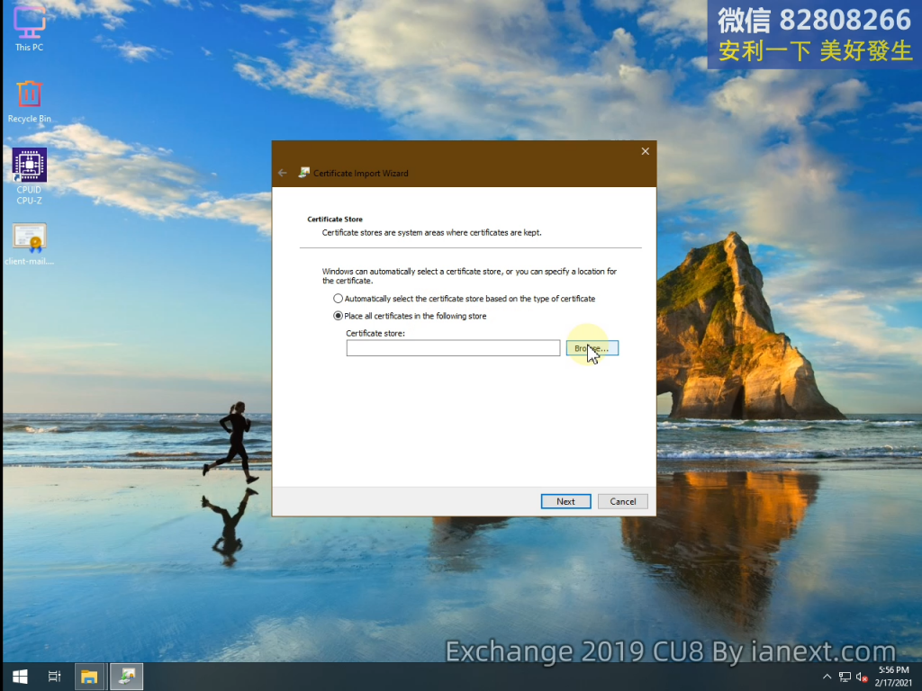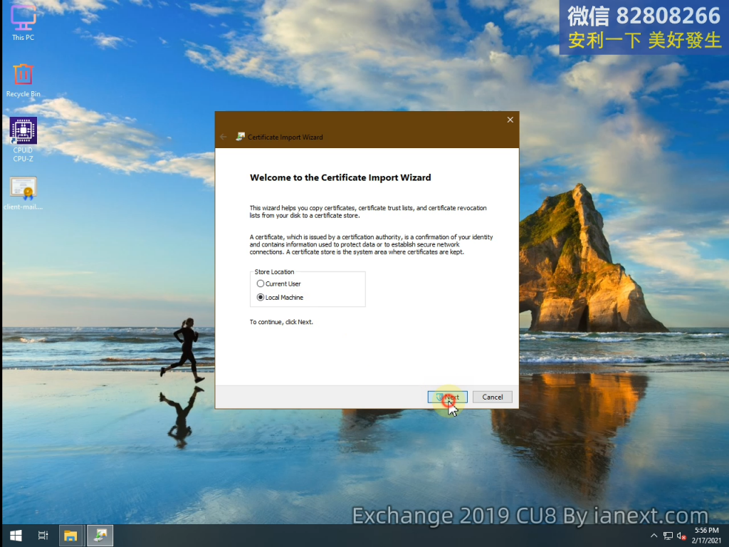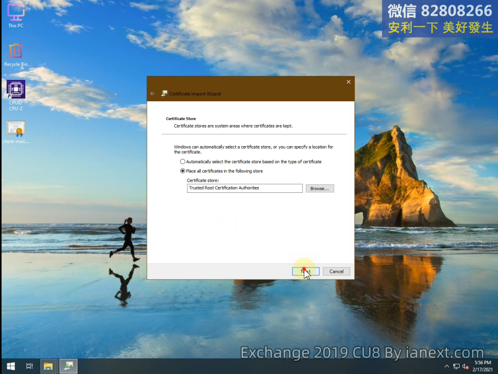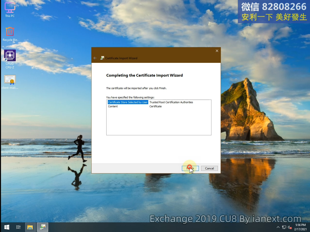 mail 是導入 Exchange 服務器的證書