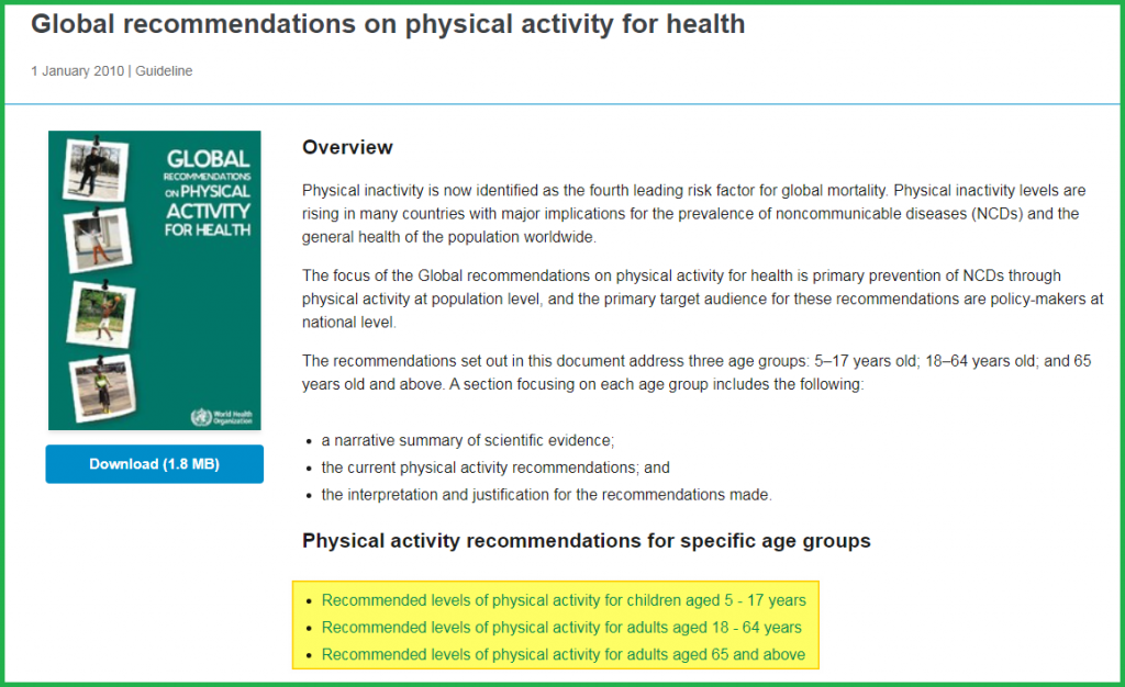 關於體育鍛煉促進健康的全球建議 Global recommendations on physical activity for health