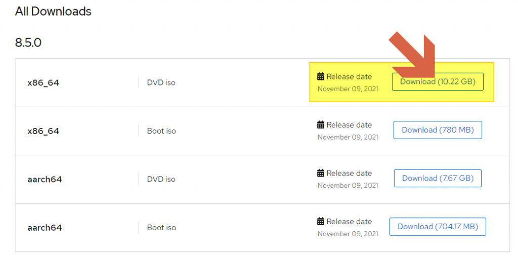 註冊完成後並自行下載 Redhat Enterprise Linux ISO 文件